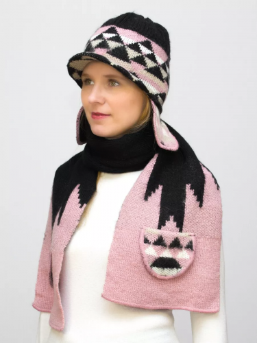 Комплект зимний женский шапка+снуд Алсу (Цвет пудровый), размер 56-58, шерсть 80%