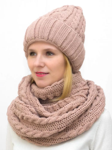 Комплект зимний женский шапка+снуд Марта (Цвет темно-пудровый), размер 56-58, шерсть 30%