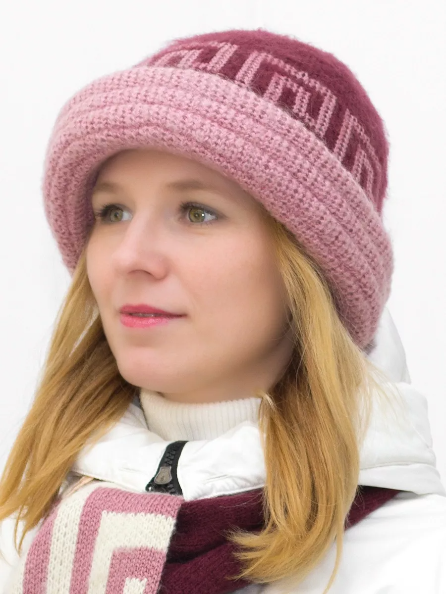 Комплект зимний женский шляпа+шарф Афина (Цвет темно-розовый).
