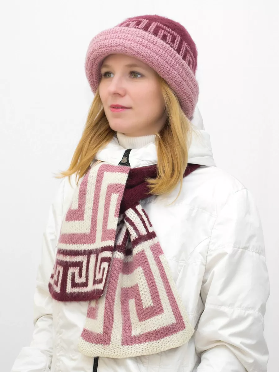 Комплект зимний женский шляпа+шарф Афина (Цвет темно-розовый), размер 54-56, шерсть 70%