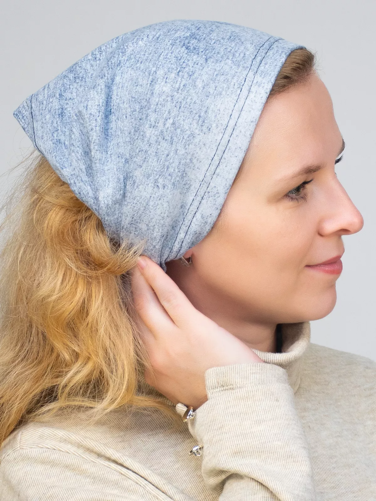 Косынка-повязка хлопковая женская Манчестер (Цвет светло-серый).