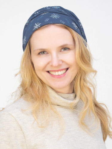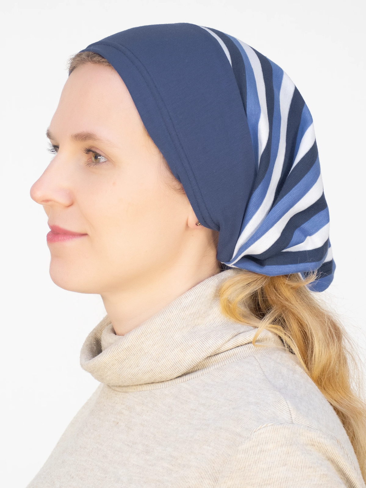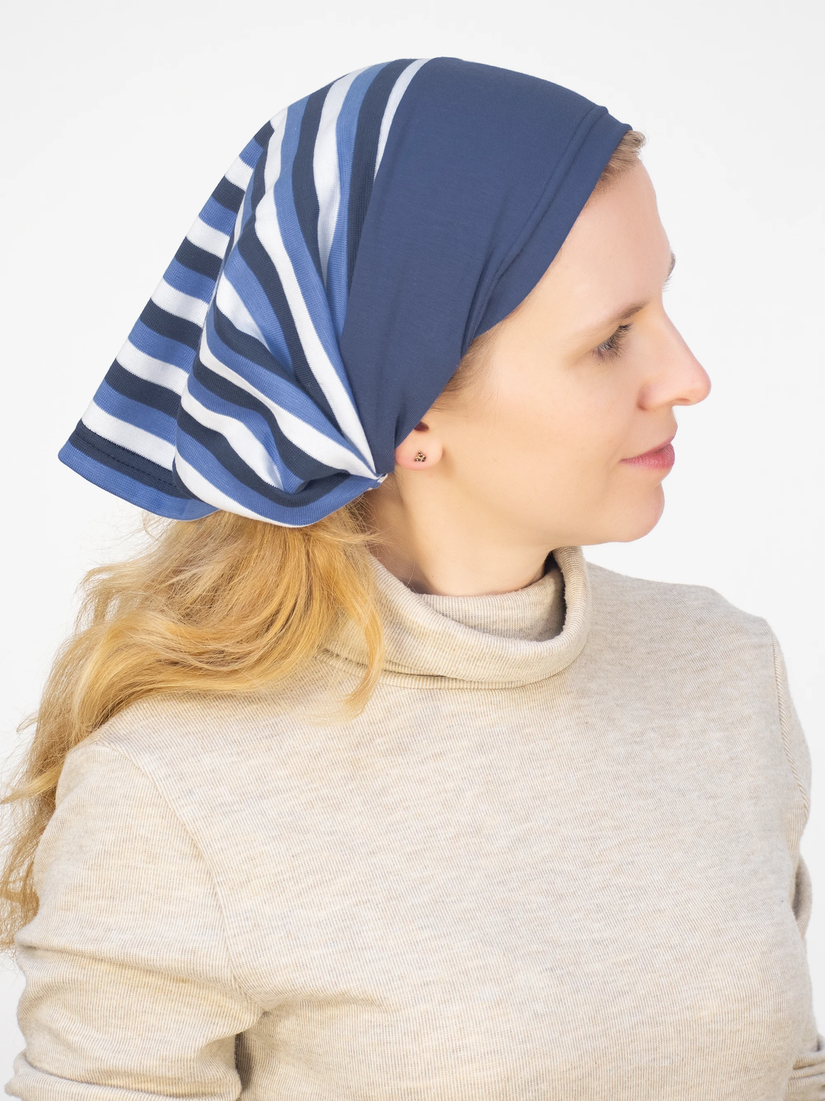 Косынка-повязка хлопковая женская Полоса синяя, размер 54-58, хлопок 95%