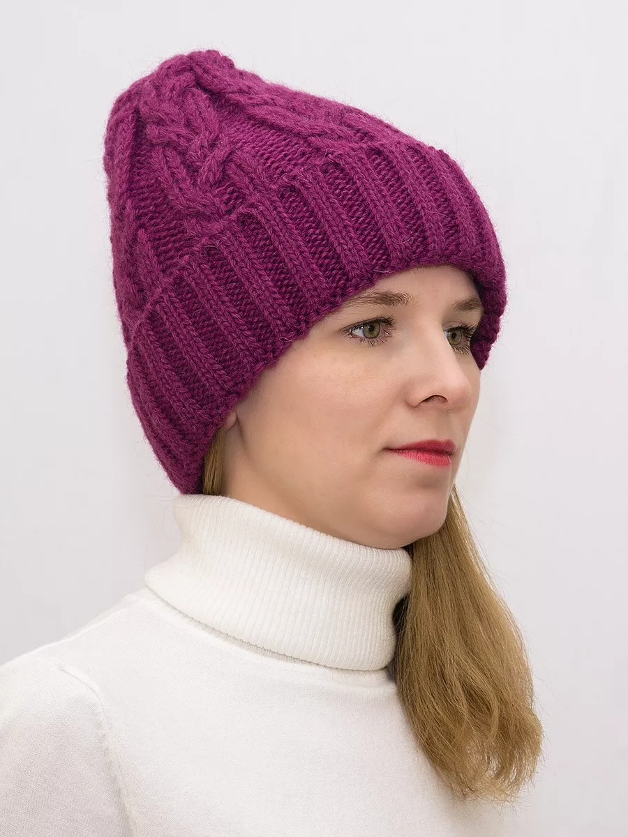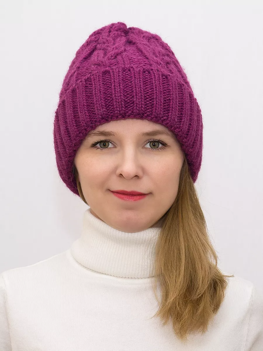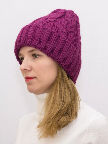 Шапка зимняя женская Джессика (Цвет фуксия), размер 54-58, шерсть 30%