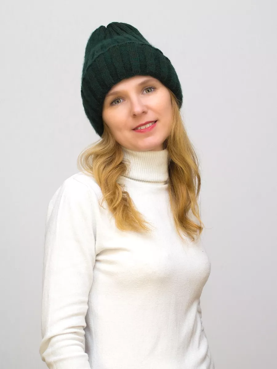 Шапка зимняя женская Зимушка (Цвет зеленый), размер 54-58, мохер 50%