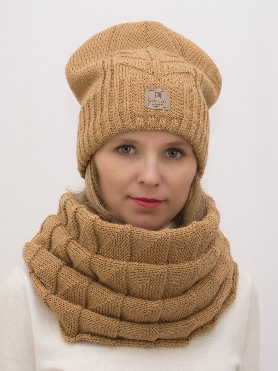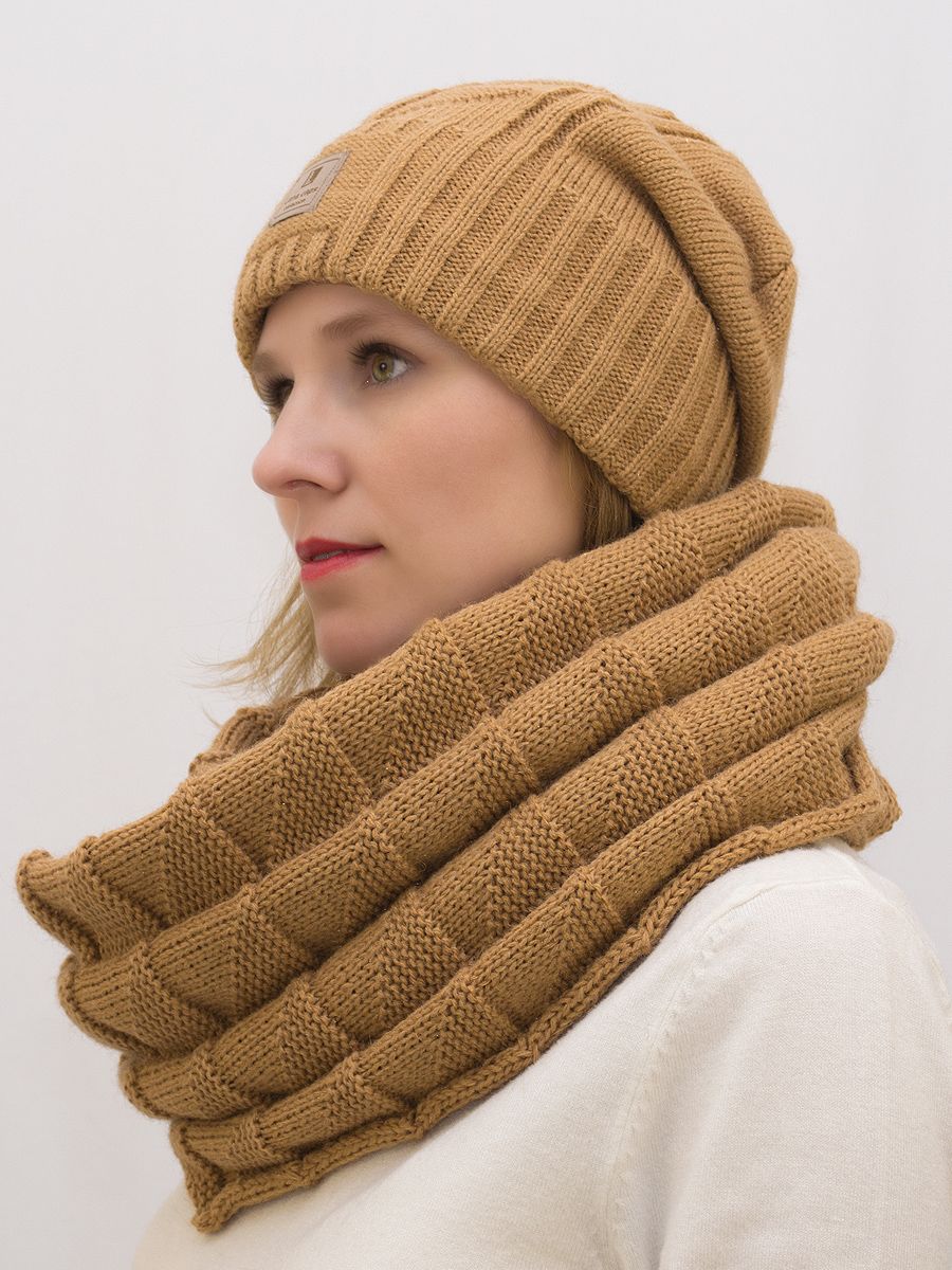 Снуд восьмерка женский Есения (Цвет песочный), Один размер, шерсть 30%