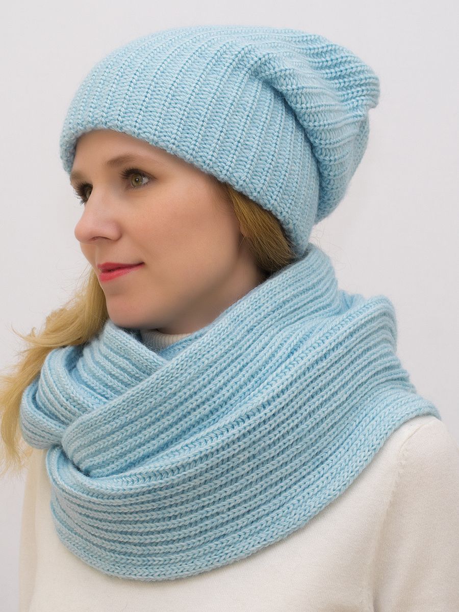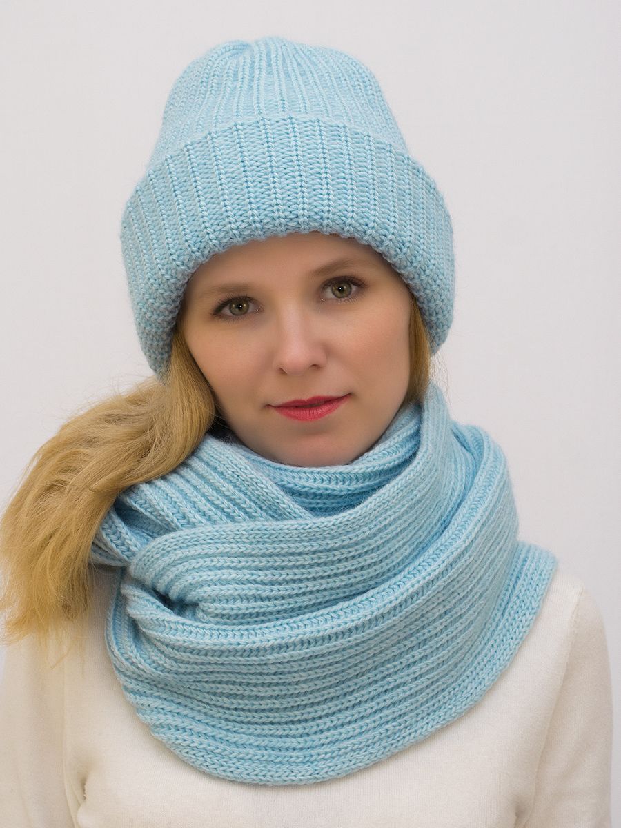 Снуд восьмерка женский Ирина (Цвет голубо-бирюзовый), Один размер, шерсть 30%