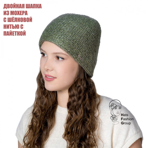 Теплая двойная шапка. Шапка выполнена из высококачественного мягкого мохера с добавлением шелковой нити с пайеткой в цвет изделия. Внутренний слой выполнен из шерстяной пряжи, что делает шапку комфортной в носке. Длина изделия - 23,5 см. Вязаная женская шапка отлично тянется и сидит на голове, при этом держит форму. Комфортная и теплая шапка, отлично подойдет для холодов. Двухслойная шапка станет основным элементом Вашего стильного и модного образа холодной осенью и зимой. Шапка станет отличным дополнением к вашему гардеробу, подойдет для сочетаний с пуховиками, шубами, пальто. Идеальное сочетание расцветок в шапке украсит любой образ.