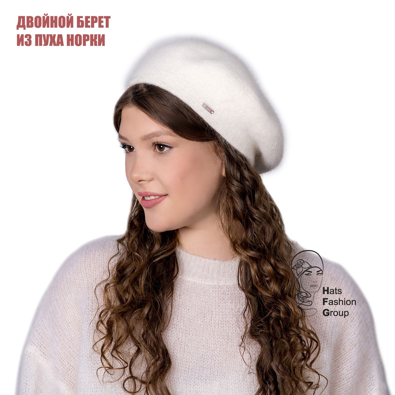 Теплый женский двухслойный берет. Берет изготовлен из  мягкого пуха норки. Мягкая вязаная модель зимнего берета не колется, тянется и не сдавливает голову. Стильный двойной берет создает неповторимый образ. Наружный диаметр берета 27 см.