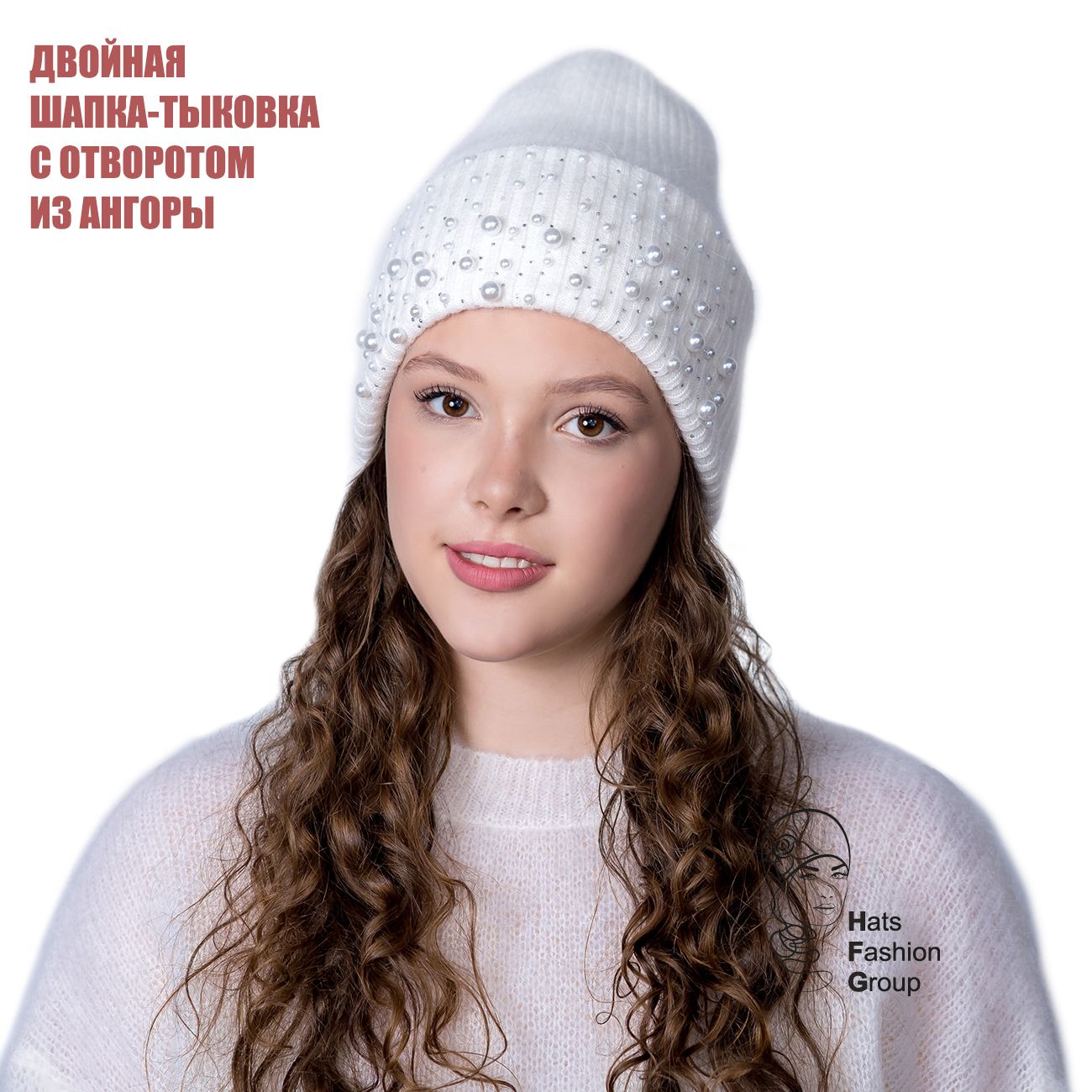 Двойная шапка-тыковка с отворотом, выполнена из из высококачественной мягкой ангоры с добавление шерсти. Вязка резинкой 2х2 придает дополнительный объем изделию. Длина изделия - 23,5 см, высота отворота - 11,5 см. Спереди шапка украшена жемчужинами и стразами в цвет изделия. Теплая зимняя шапка плотно облегает голову и не сползает. Комфортная и теплая шапка, отлично подойдет для холодов. Двухслойная шапка станет основным элементом Вашего стильного и модного образа холодной осенью и зимой. Шапка станет отличным дополнением к вашему гардеробу, подойдет для сочетаний с пуховиками, шубами, пальто. Идеальное сочетание расцветок в шапке украсит любой образ.