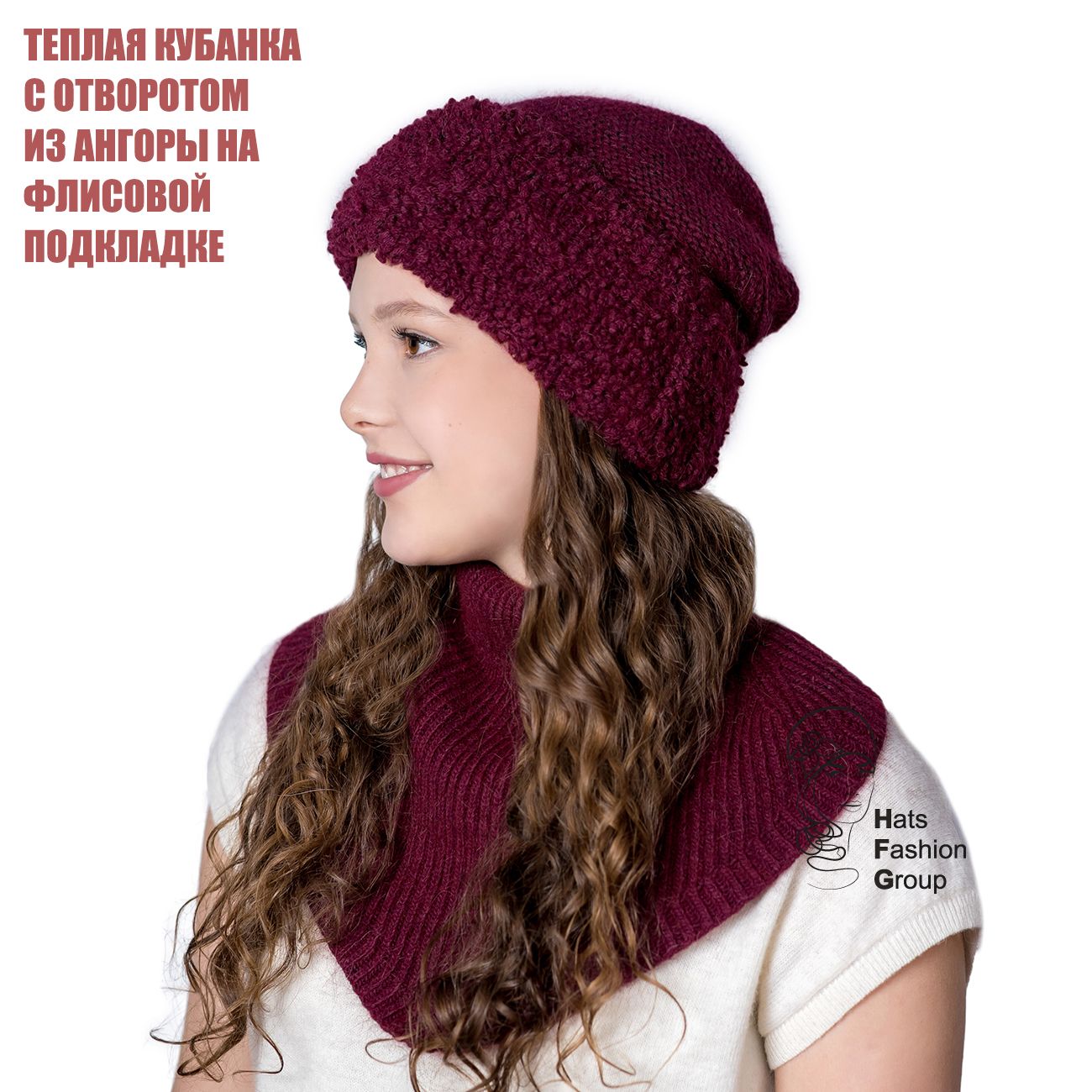 Объемная теплая шапка-кубанка. Кубанка выполнена из высококачественной мягкой ангоры с добавление шерсти. На двойном теплом отвороте выполнена отделка, имитирующая букле. Женская кубанка утеплена флисом, который делает изделие очень приятным и комфортным в носке. Объем шапке придают декоративные складки сзади. Длина шапки - 23 см, высота отворота - 10 см. Двойной отворот на шапке-кубанке  утепляет уши и придает дополнительный объем.Наша шапка-кубанка мягкая и не колючая. Она комфортно облегает голову, не сдавливает, не сползает и отлично держит форму.