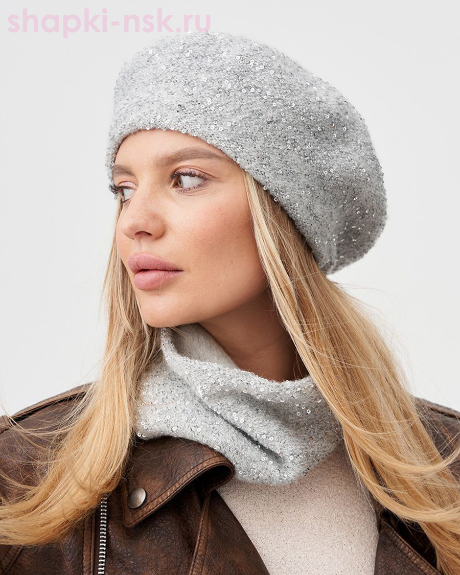 Эльза пряжа Альпака пайетки Берет (56-58)