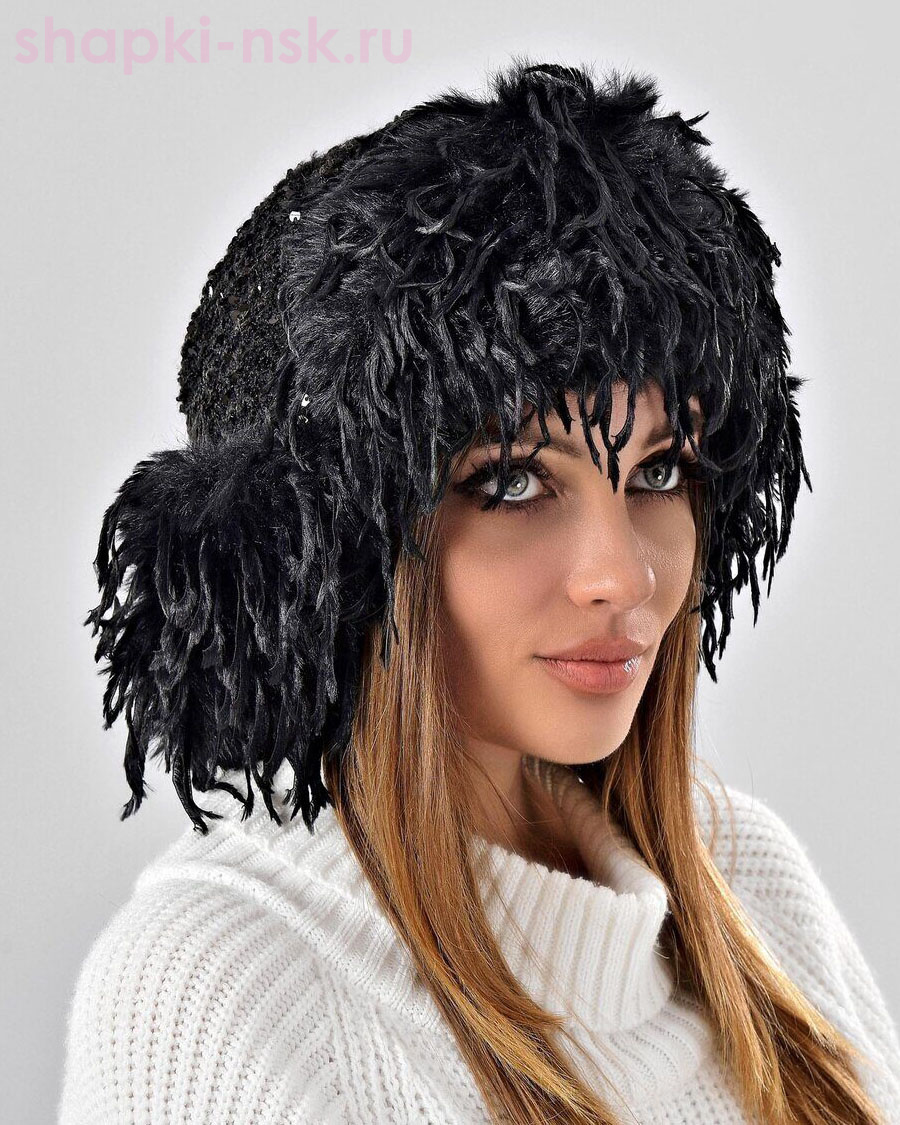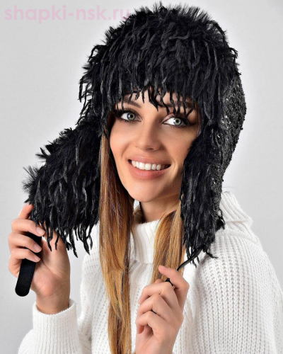 Букле пайетка страус корот.уши Ушанка флис (56-58)