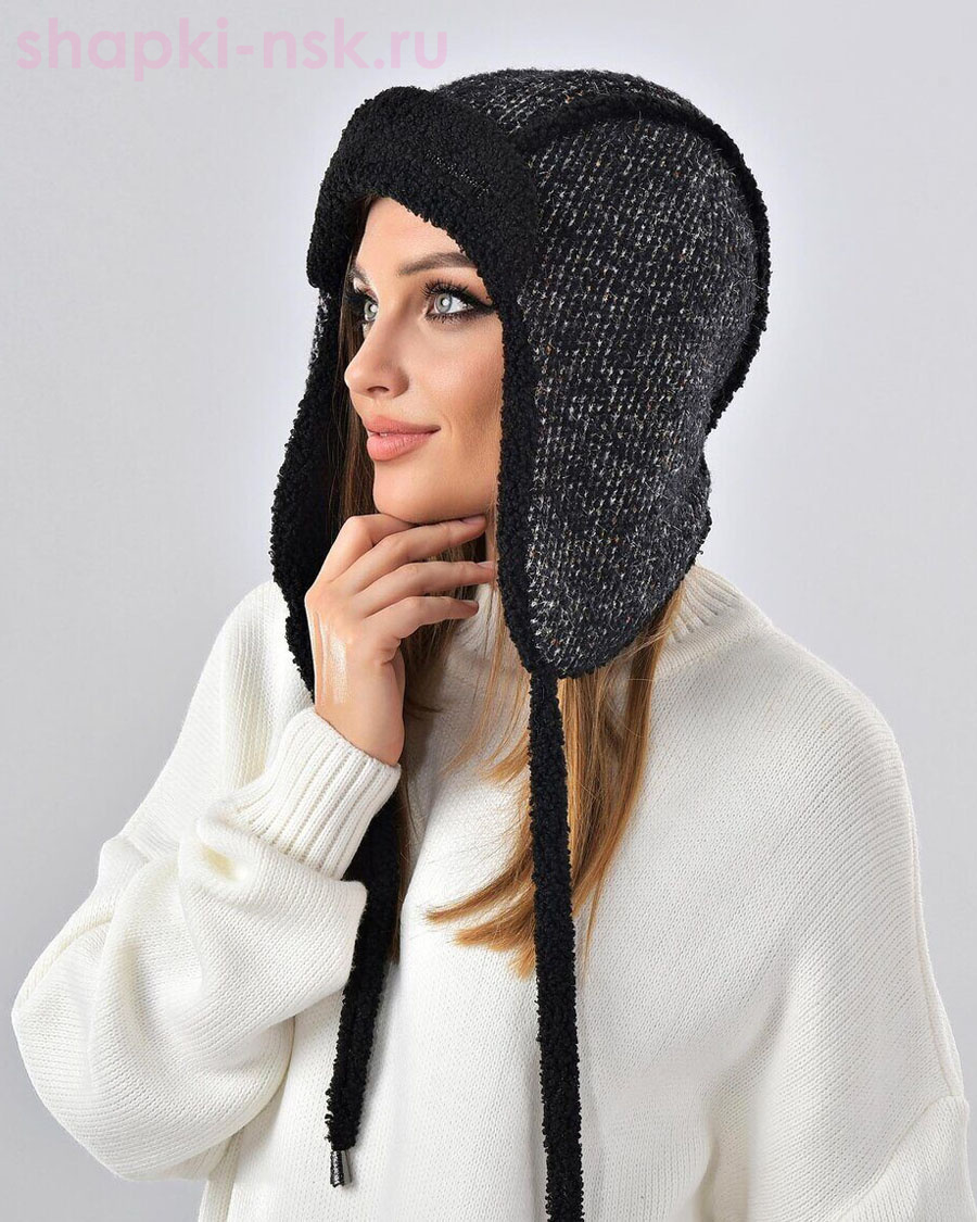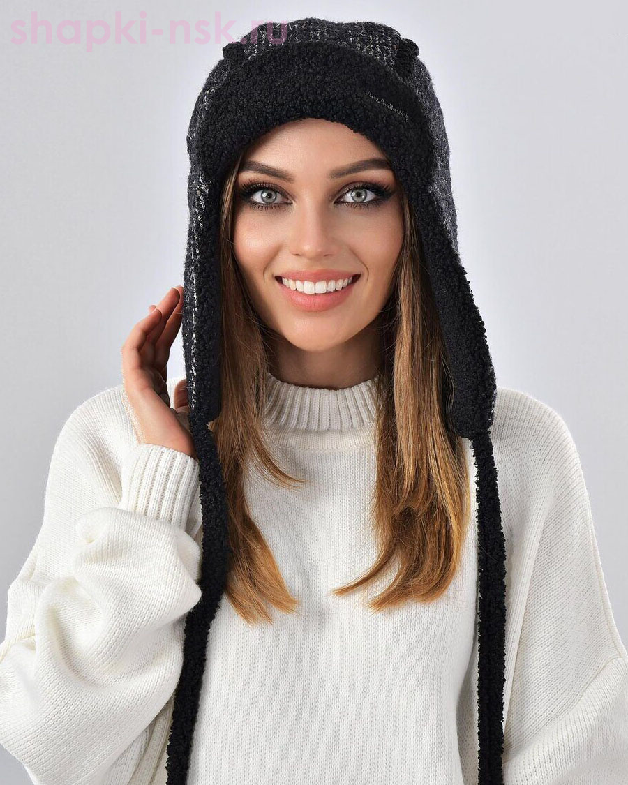 Мохер мульти надпись Ушанка флис (56-58)