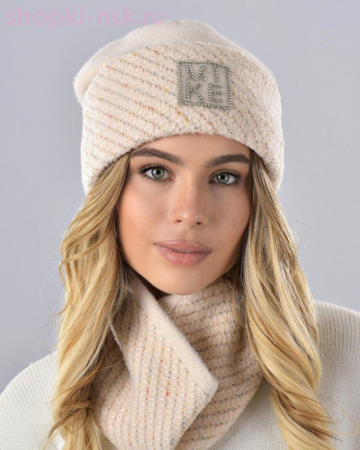 Мохер мульти отворот МА овал Комплект флис (шапка+снуд) (56-58)