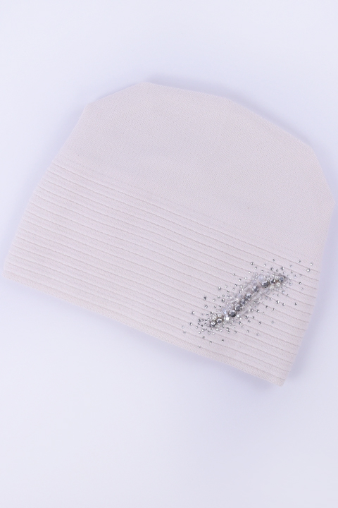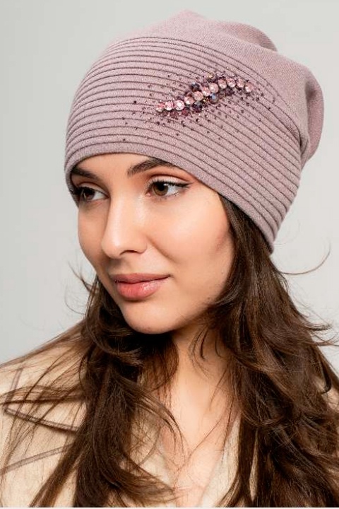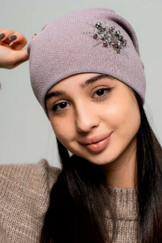 Шапка женская на флисовом подкладе, сзади оформлена драпировка и закреплена строчкой.