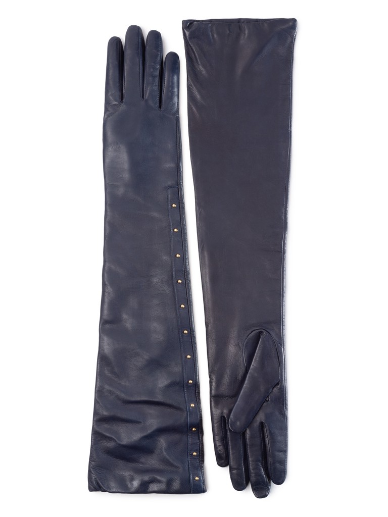 Перчатки торговой марки ELEGANZZA производства Филиппины. Выполнены из кожи ягненка. Подкладка: 50% шерсть + 50% кашемир.  Отделка - дополнительная тонкая полоска по всей длине перчатки по линии мизинца, украшенная миниматюрными хольнитенами. Длина манжеты от нижней точки большого пальца до края перчаток - 34 см. Длина пальцев - средние.