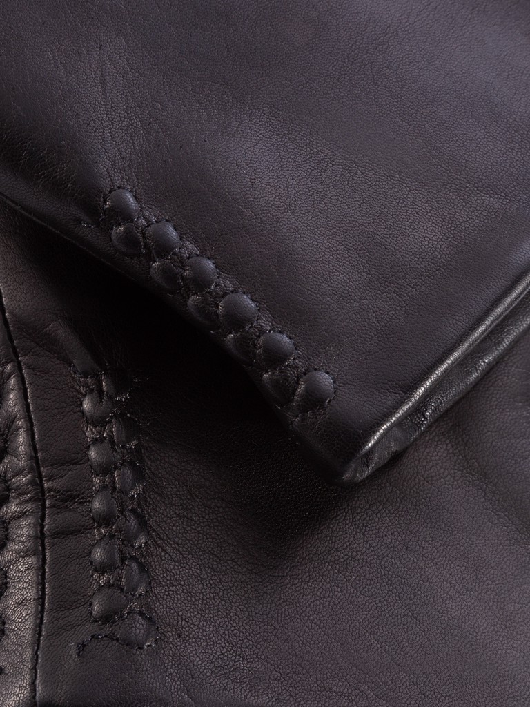 Перчатки торговой марки ELEGANZZA производства Китай выполнены из натуральной кожи ягненка черного цвета. Подкладка: натуральный мех ягненка. Отделка - декоративная сборка по вдоль боковых швов. Длина манжеты от нижней точки большого пальца до края перчаток - 7 см. Длина пальцев - средняя.