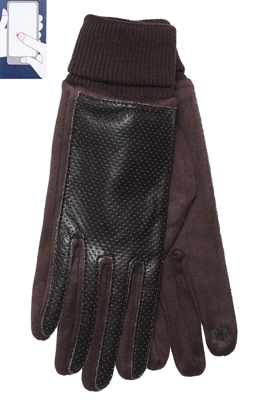 Перчатки женские сенсорные (нашивка на кончике указательного пальца). Комбинированные: ладонь иск.замша на основе велюра, сверху - эко-кожа.