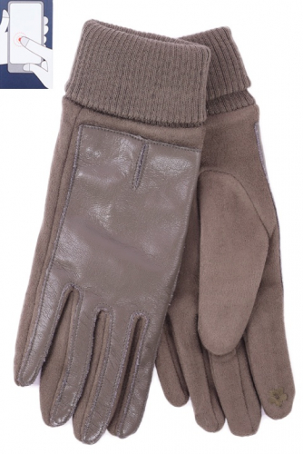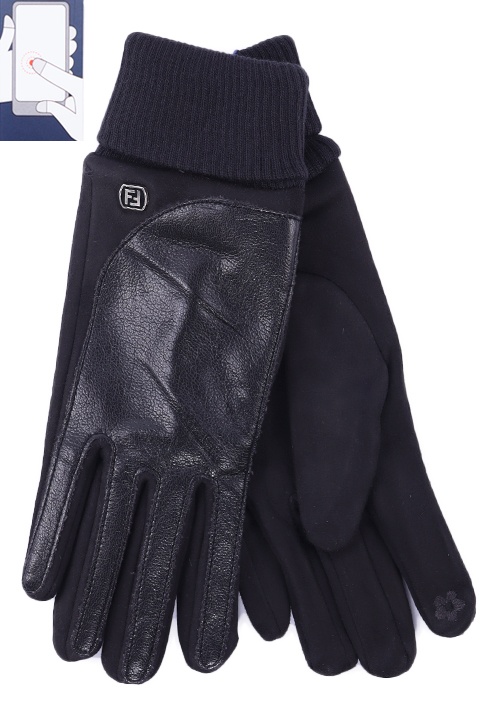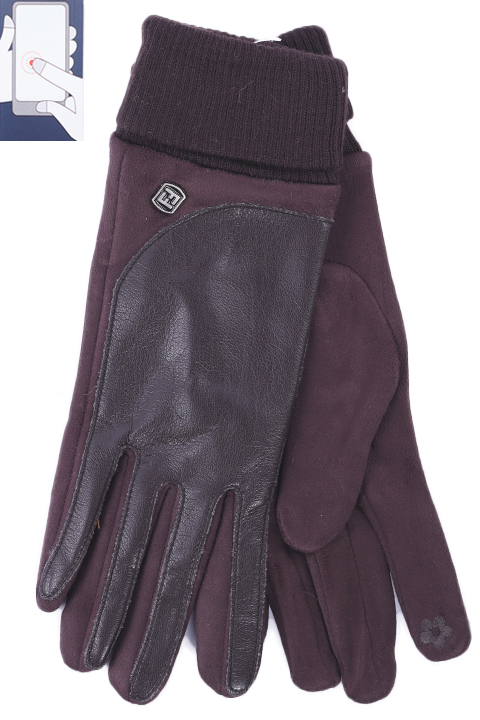 Перчатки женские сенсорные (нашивка на кончике указательного пальца). Комбинированные: ладонь иск.замша на основе велюра, сверху - эко-кожа.
