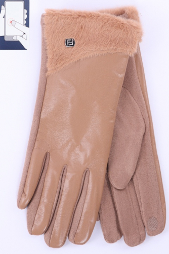 Перчатки женские сенсорные (нашивка на кончике указательного пальца). Комбинированные: ладонь иск.замша на велюровой основе. Сверху - иск.мех на подкладе велюр и вставка из эко-кожи.