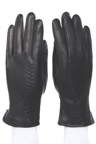 Перчатки женские из натуральной кожи на плюшевом подкладке. Кожа у перчаток мягкая, имеет фактурную, негладкую поверхность.