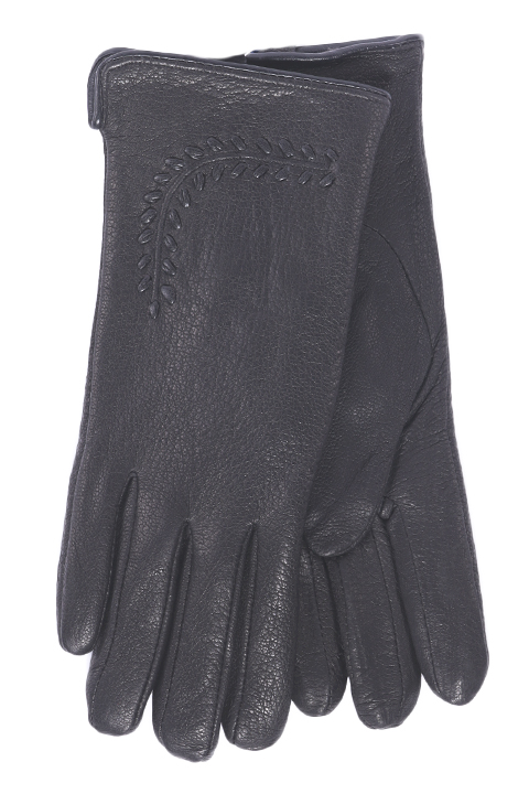 Перчатки женские из натуральной кожи на плюшевом подкладке. Кожа у перчаток мягкая, имеет фактурную, негладкую поверхность.