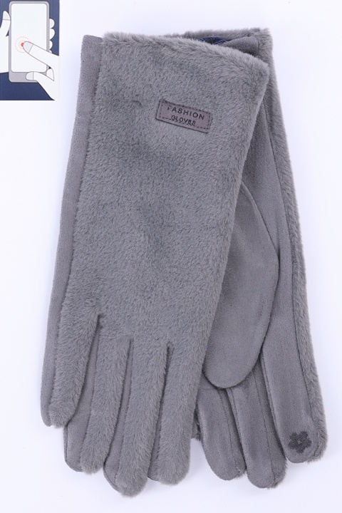 Перчатки сенсорные (нашивка на кончике указательного пальца). Комбинированные: ладонь иск.замша на велюровой основе, сверху - иск.мех на велюровой основе.