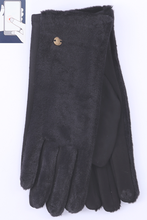 Перчатки сенсорные (нашивка на кончике указательного пальца). Комбинированные: ладонь иск.замша на велюровой основе, сверху - иск.мех на велюровой основе.