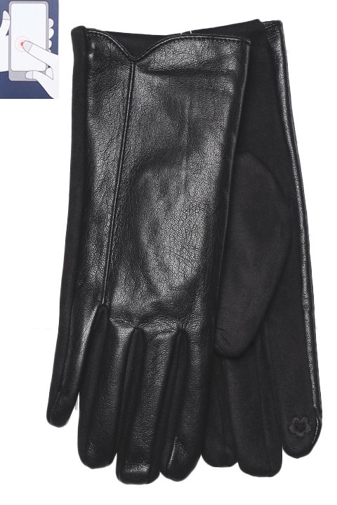 Перчатки женские сенсорные (нашивка на кончике указательного пальца) комбинированные ладонь - иск.замша на велюровой основе, верх - мягкая иск.кожа на велюровой основе.