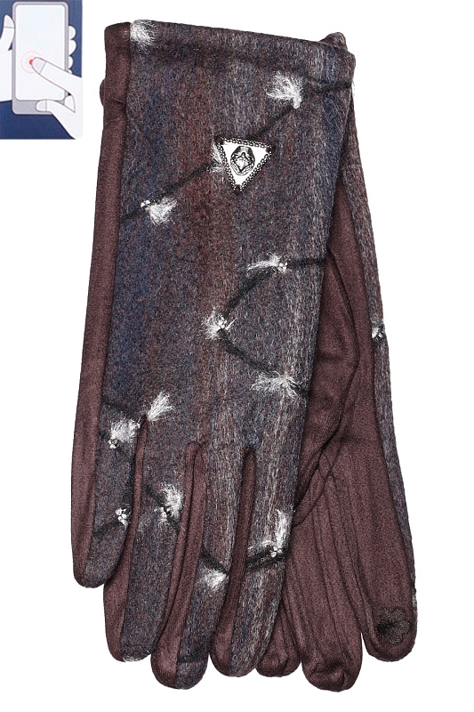 Перчатки женские сенсорные (нашивка на кончике указательного пальца). Комбинированные: верх - трикотажное сукно, ладонь - иск.замша на велюровой основе.