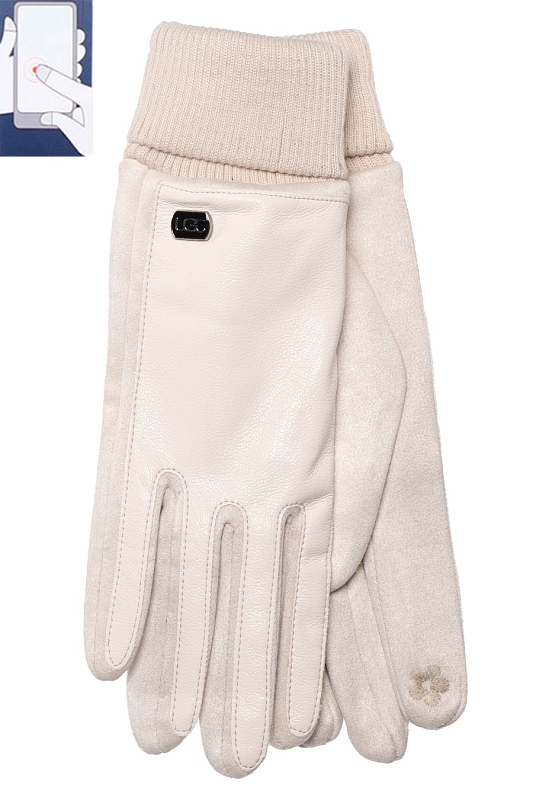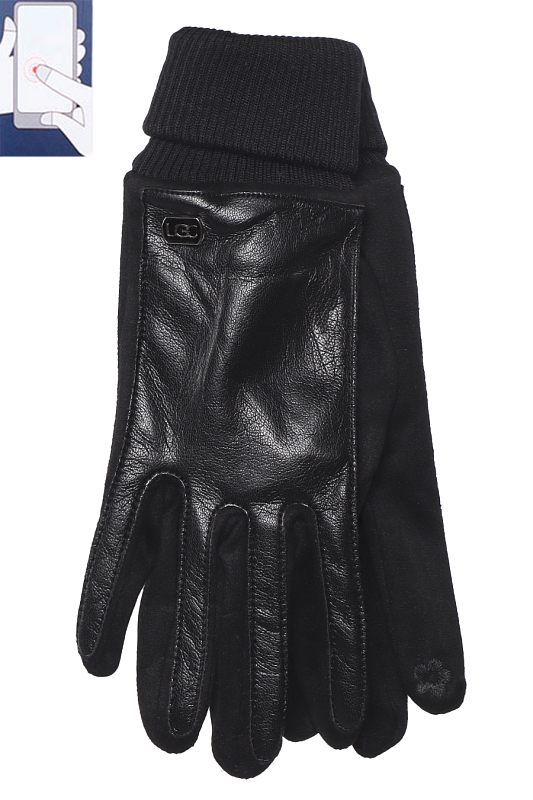 Перчатки женские сенсорные (нашивка на кончике указательного пальца). Комбинированные: ладонь иск.замша на основе велюра, сверху - эко-кожа.