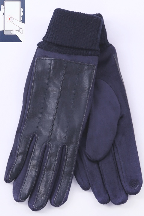 Перчатки женские сенсорные (нашивка на кончике указательного пальца). Комбинированные: ладонь иск.замша на основе велюра, сверху - эко-кожа.