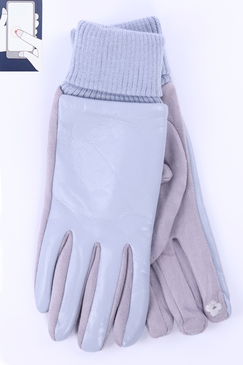 Перчатки женские сенсорные (нашивка на кончике указательного пальца). Комбинированные: ладонь иск.замша на основе велюра, сверху - эко-кожа.