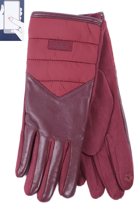 Перчатки женские сенсорные (нашивка на кончике указательного пальца). Комбинированные: ладонь иск.замша на велюровой основе. Сверху - курточная ткань на подкладе велюр и вставка на пальцах из эко-кожи + тонкий слой синтепона.