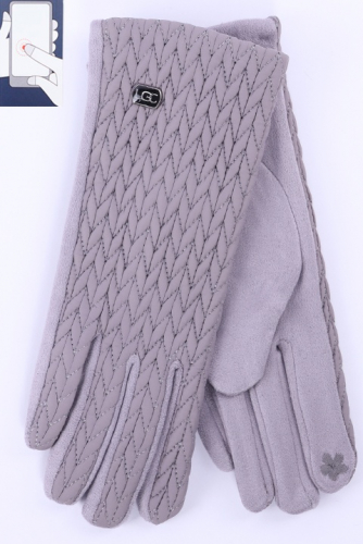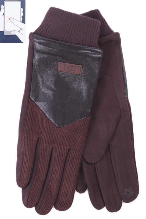 Перчатки женские сенсорные (нашивка на кончике указательного пальца). Комбинированные: ладонь иск.замша на велюровой основе. Сверху - трикотаж на подкладе велюр и вставка из эко-кожи.