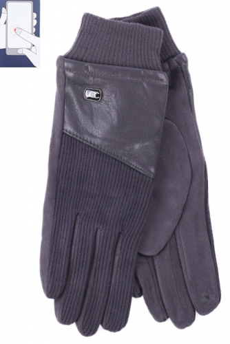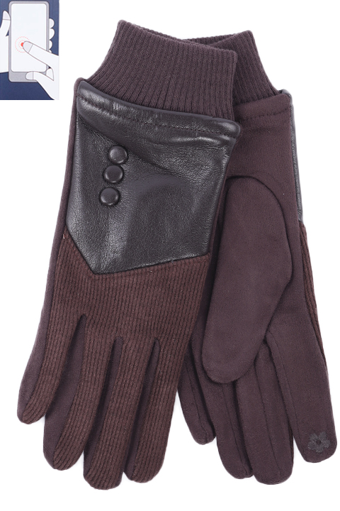 Перчатки женские сенсорные (нашивка на кончике указательного пальца). Комбинированные: ладонь иск.замша на велюровой основе. Сверху - трикотаж на подкладе велюр и вставка из эко-кожи.