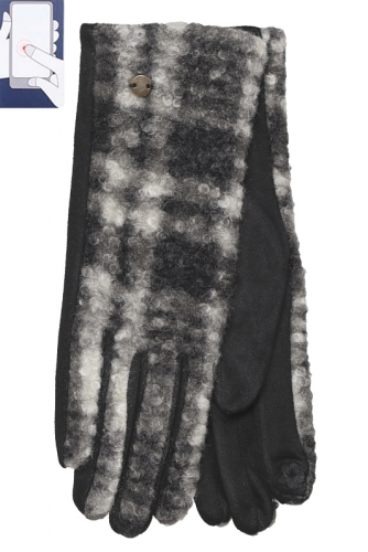 Перчатки сенсорные (нашивка на кончике указательного пальца). Комбинированные: ладонь иск.замша на велюровой основе, сверху - плотная, мягкая ткань "букле". Трикотажный манжет, шириной 4,5 см.