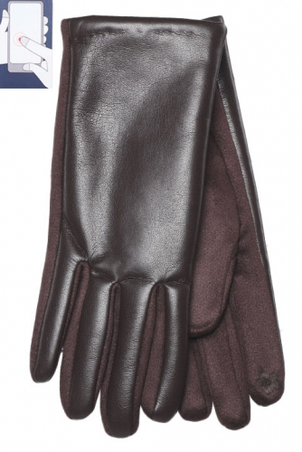 Перчатки из иск. замши на велюровой основе, сенсорные (нашивка на кончике указательного пальца). Украшены вставкой эко-мех.