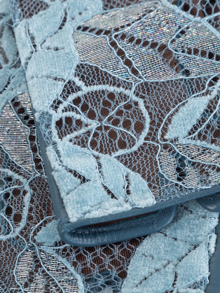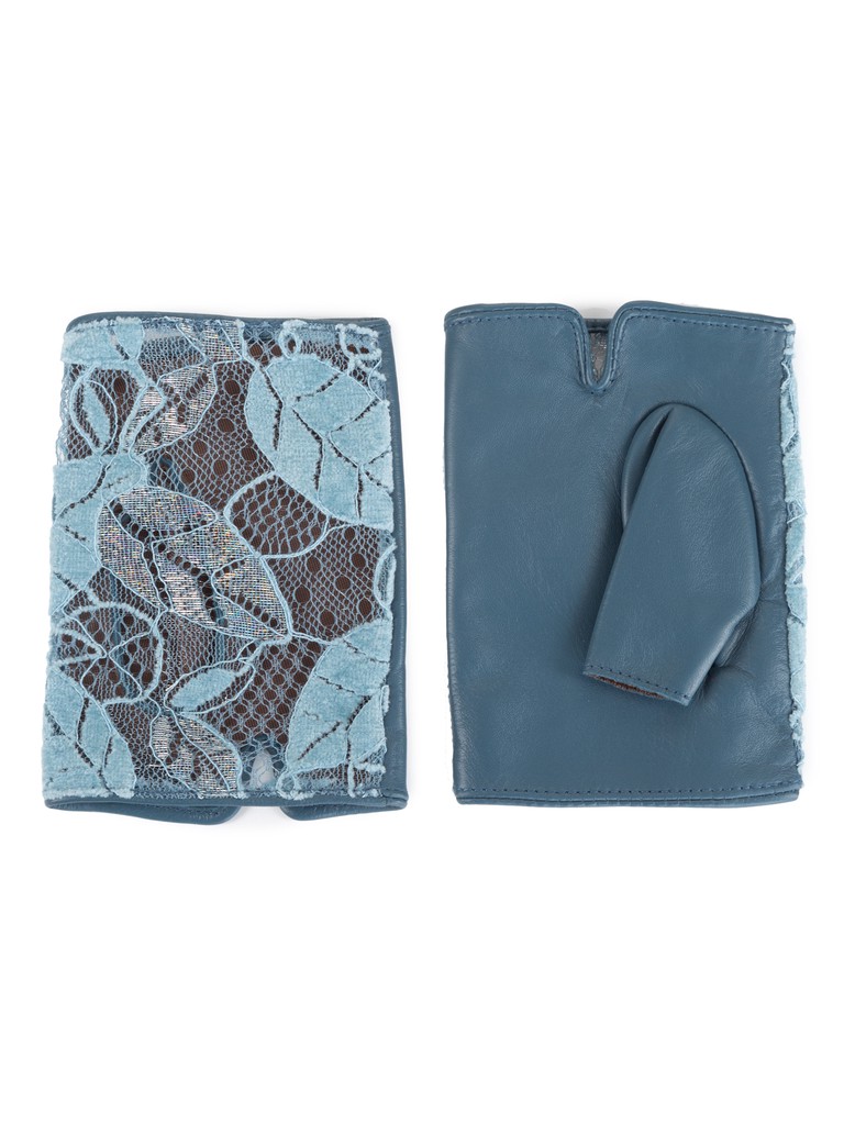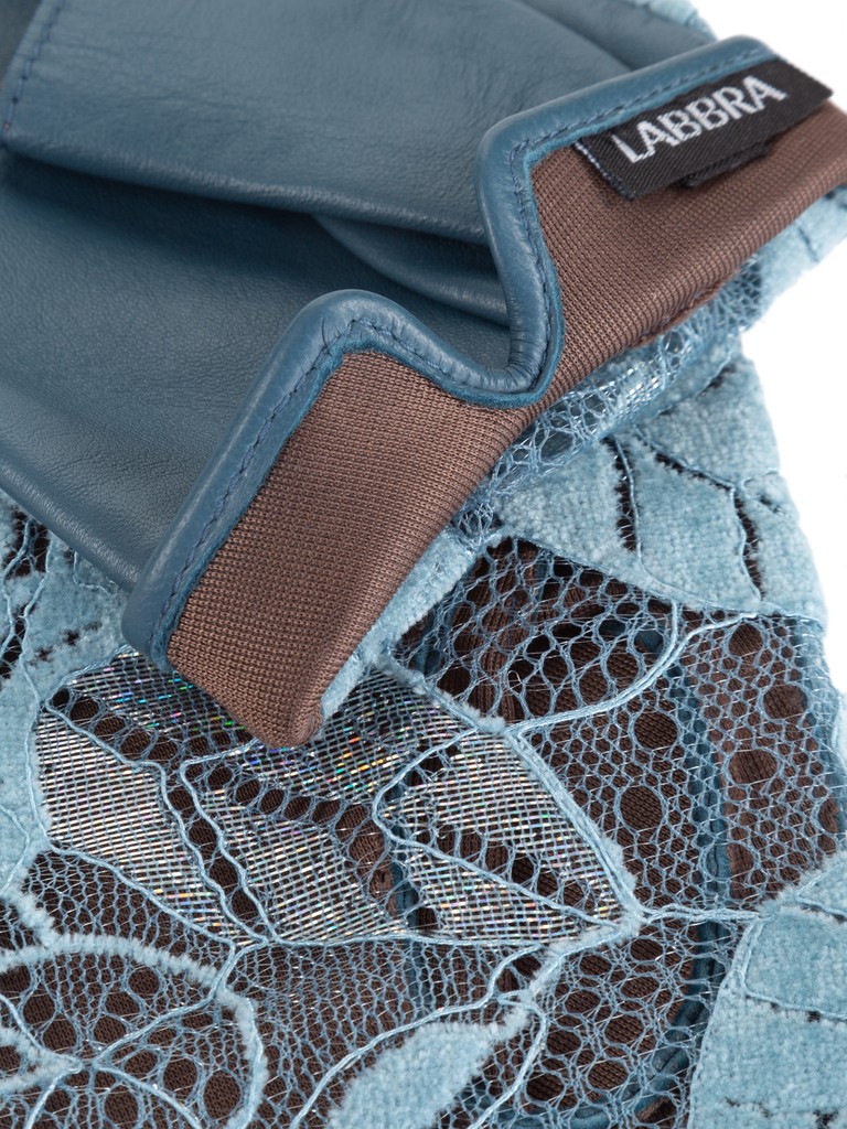 Митенки женские торговой марки LABBRA производства Китай. Ладонная часть выполнена из натуральной кожи ягненка, лицевая часть: из гипюра. Подкладка: шелк на ладонной части. Длина манжеты от нижней точки большого пальца до края перчаток - 2,5 см.