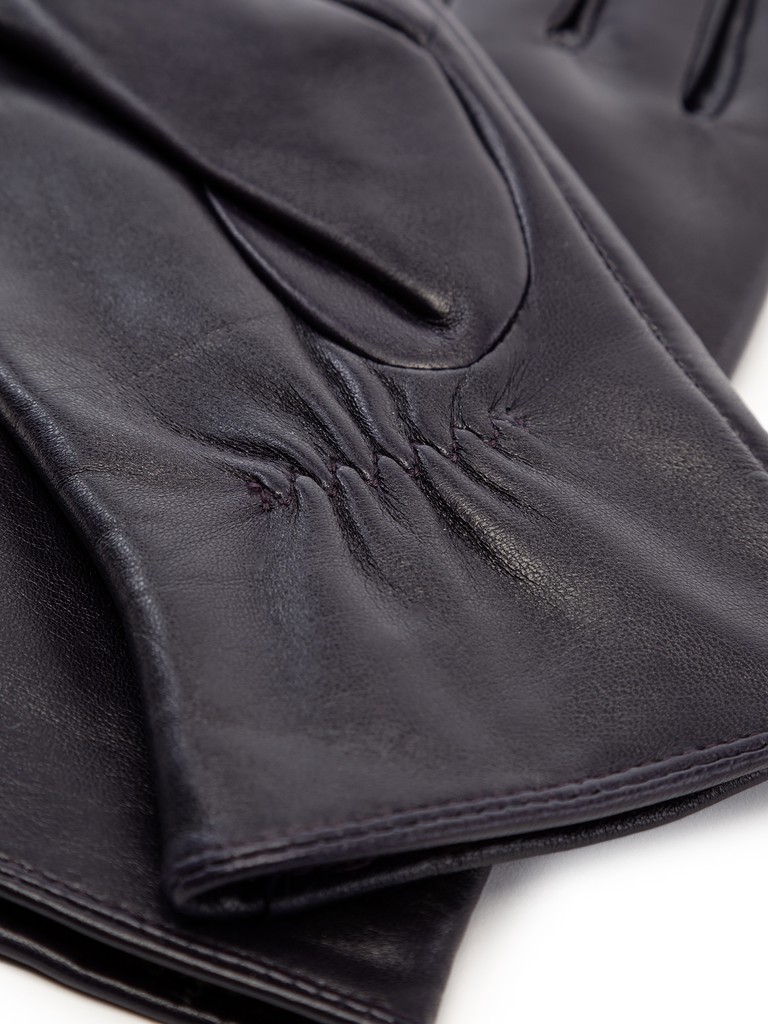 Перчатки женские базовые торговой марки LABBRA из натуральной кожи ягненка. Производитель Китай. Подкладка: 70% шерсть, 30% акрил. Резинка на ладонной части, что обеспечивает плотную посадку по запястью. Длина манжеты от нижней точки большого пальца до края перчаток - 5 см. Длина пальцев - средняя.