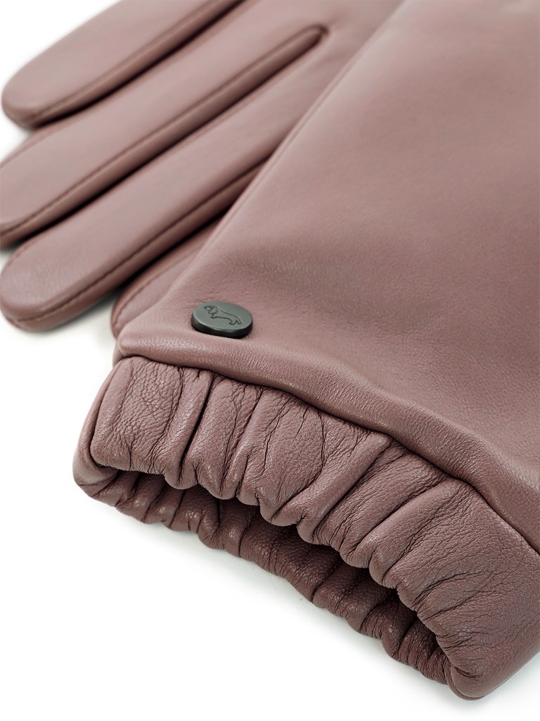 Перчатки женские торговой марки LABBRA из натуральной кожи ягненка. Производитель Китай. Подкладка: 70% шерсть, 30% акрил. Отделка - манжета собрана на плотную резинку, что обеспечивает идеальный обхват на запястье; фурнитура с фирменной символикой. Длина манжеты от нижней точки большого пальца до края перчаток - 3,5 см. Длина пальцев - средняя.