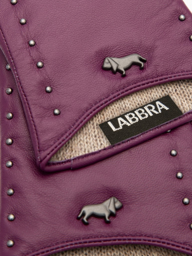 Перчатки женские торговой марки LABBRA производства Китай. Выполнены из натуральной кожи ягненка. Подкладка - 70% шерсть, 30% акрил. Декоративная отделка металлическими хольнитенами по линии манжеты перчатки. Длина манжеты от нижней точки большого пальца до края перчаток - 6 см. Длина пальцев - средняя.
