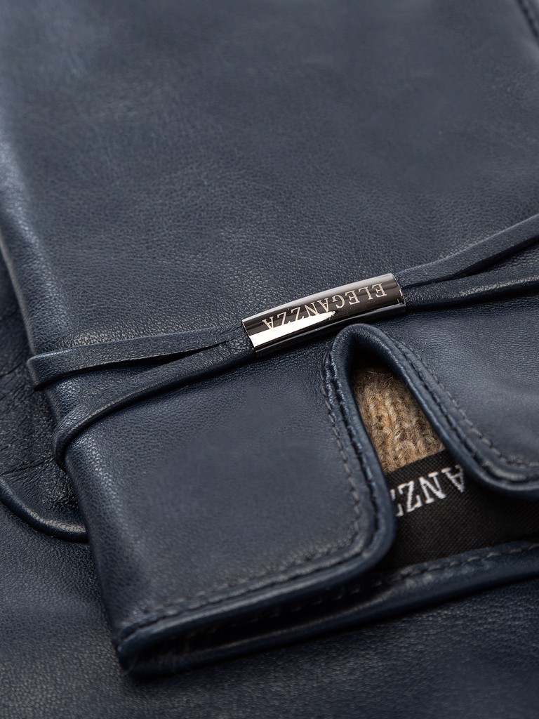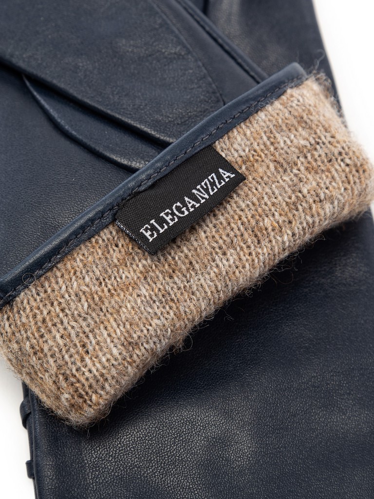 Перчатки торговой марки ELEGANZZA производства Китай выполнены из кожи ягнёнка чёрного цвета. Подкладка: 100% шерсть. Декоративные элементы - фирменная фурнитура на узких кожаных ремнях. Нижний край перчатки и разрез на лицевой стороне окантованы. Длина манжеты от нижней точки большого пальца до края перчаток - 6 см.