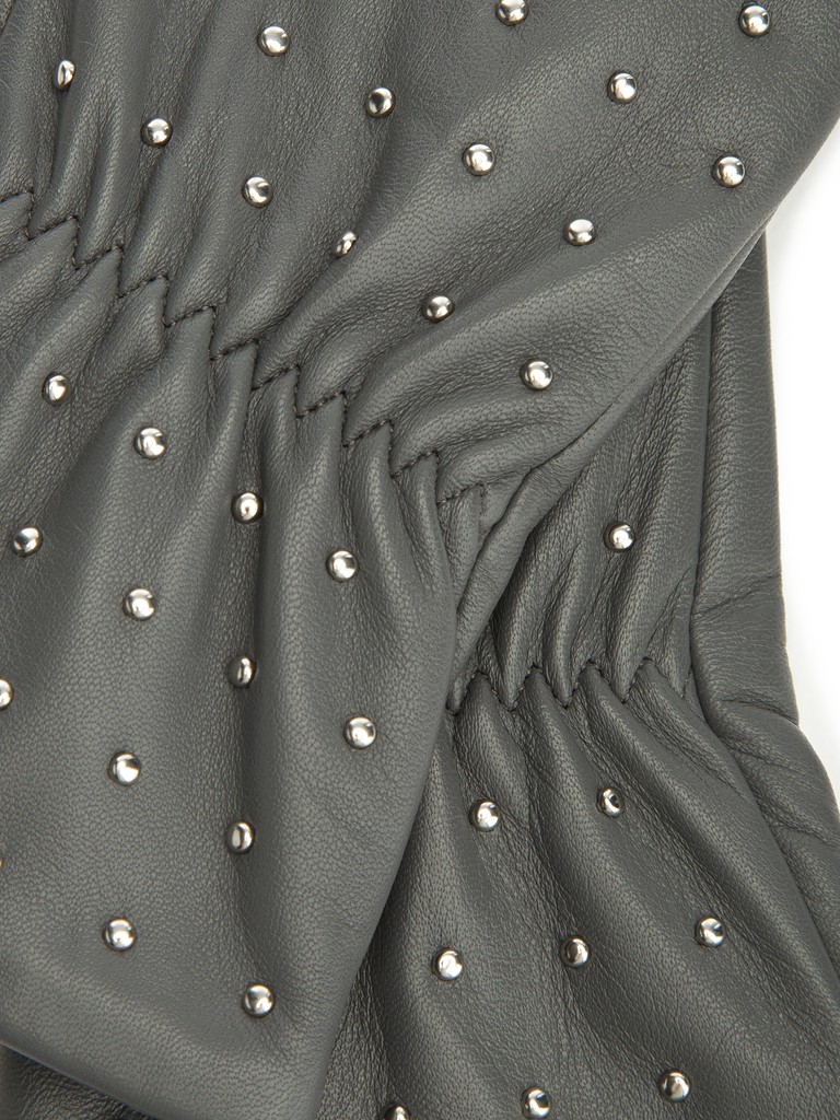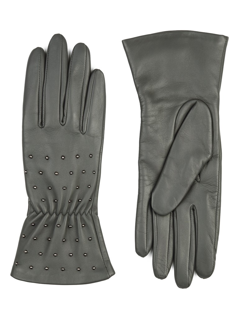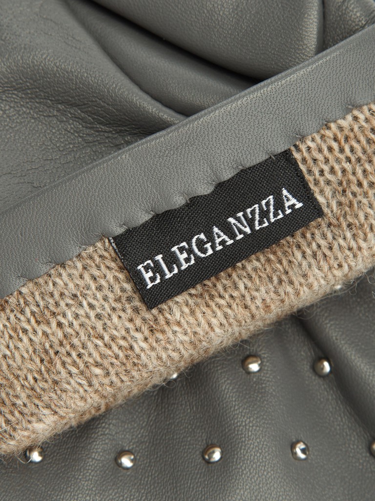 Перчатки женские торговой марки ELEGANZZA из натуральной кожи ягненка. Производство Китай. Подкладка: 100% шерсть. Отделка - декоративные хольитены на лицевой части, резинка в районе запясться, которая делает более плотной фиксацию манжета. Длина манжеты от нижней точки большого пальца до края перчаток - 5,5 см. Длина пальцев - средняя.