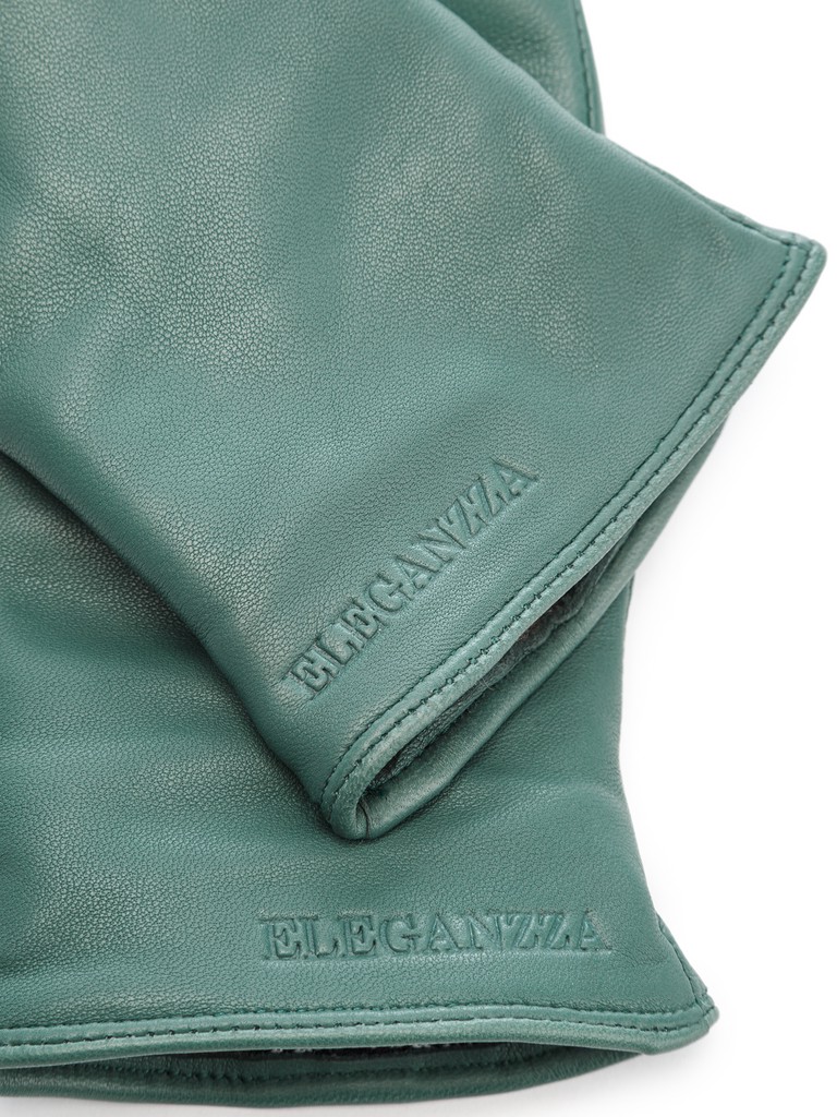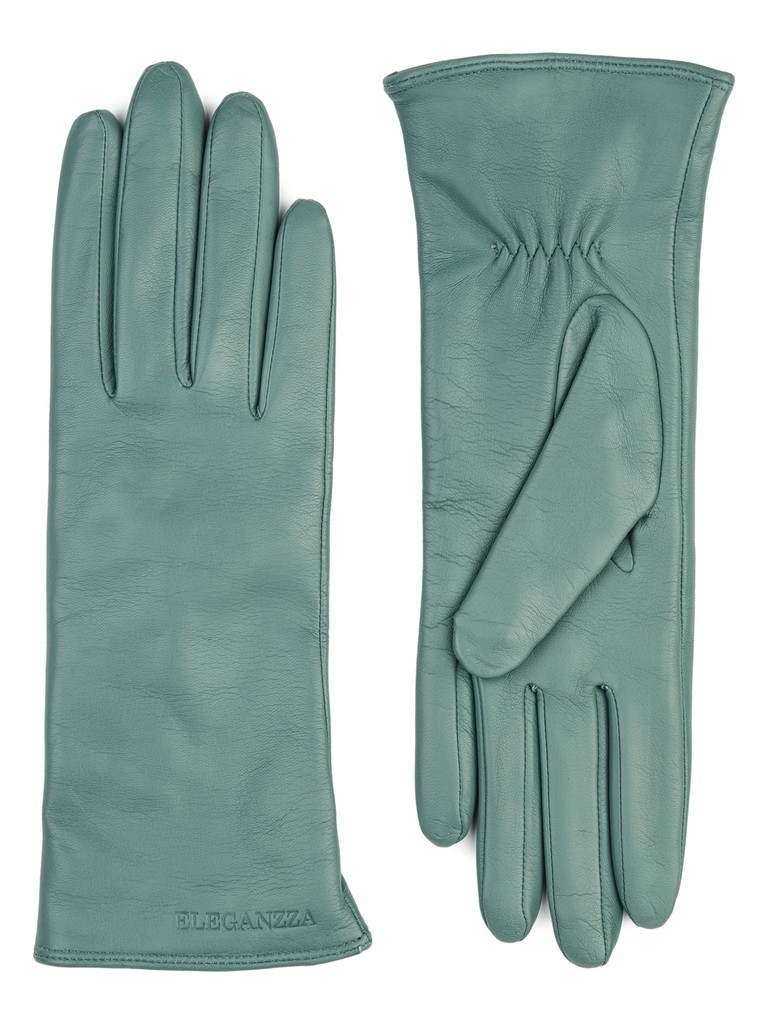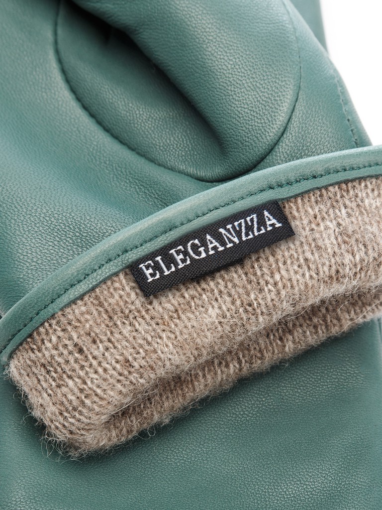 Перчатки женские торговой марки ELEGANZZA из натуральной кожи ягненка производства Италии. Подкладка: 100% шерсть. В углу перчатки со стороны мизинца фирменный "штамп" ELEGANZZA. Длина манжеты от нижней точки большого пальца до края перчаток составляет - 5,5 см. Длина пальцев - средняя.