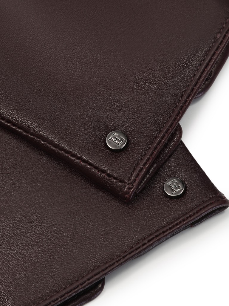 Перчатки женские торговой марки ELEGANZZA производства Китай изготовлены из натуральной кожи ягненка. Декоративная отделка - металлические фурниутра с фирменной символикой на лицевой стороне. Подкладка: 100% шерсть. Длина манжеты от нижней точки большого пальца до края перчаток - 6 см. Длина пальцев - средняя.