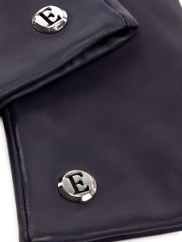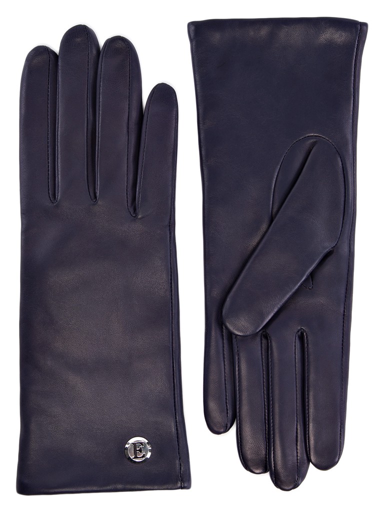 Перчатки торговой марки ELEGANZZA производства Италия выполнены из натуральной кожи ягненка. Подкладка: 85% шерсть, 15% кашемир. Отделка - фурнитура с фирменной символикой в углу перчатки. Длина манжеты от нижней точки большого пальца до края перчаток - 6 см. Длина пальцев - удлиненные.