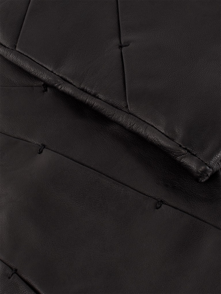 Перчатки женские торговой марки ELEGANZZA из натуральной итальнской кожи ягненка. Подкладка: 85% шерсть + 15% кашемир. Отделка - декоративные складки по диагонали на лицевой стороне, украшенные стежками ручной работы, гарантирующими дополнительную фиксацию конструкции. Длина манжеты от нижней точки большого пальца до края перчаток - 11,5 см. Длина пальцев - средняя.