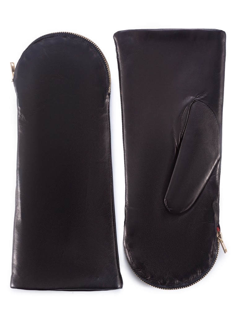 Рукавицы женские торговой марки ELEGANZZA производства Китай изготовлены из натуральной кожи ягнёнка. Отделка - рабочая молния по верхнему шву рукавиц, меховая подкладка контрастного цвета. Подкладка: 100% мех кролика. Длина манжеты от нижней точки большого пальца до края перчаток - 7,5 см. Длина пальцев - средняя.