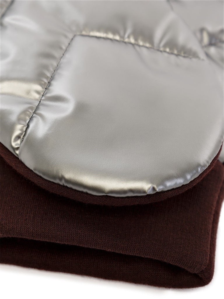 Стильные и комфортные рукавицы из ткани 100% полиэстер с лицевой стороны и трикотажа 50% полиэстер и 50% хлопок с ладонной и на манжете. Отделка - V-образная декоративная строчка на передней части. Модель выполнена на подкладке из флиса. Рукавицы универсального размера, подойдут на любую полноту руки. Длина манжеты от нижней точки большого пальца до края рукавицы - 7,5 см.